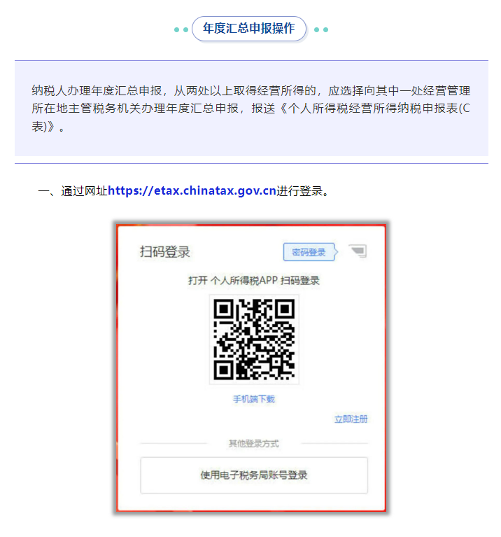 从两处以上取得经营所得的,选择向其中一处经营管理所在地主管税务机关办理年度汇总申报,还需要报送《个人所得税经营所得纳税申报表(C表)》。
