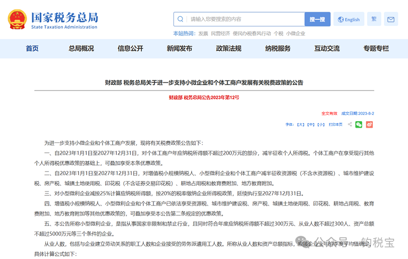 财政部、国家税务总局发布的《关于进一步支持小微企业和个体工商户发展有关税费政策的公告》(财政部 税务总局公告2023年第12号)规定,“自2023年1月1日至2027年12月31日,对增值税小规模纳税人、小型微利企业和个体工商户减半征收资源税(不含水资源税)、城市维护建设税、房产税、城镇土地使用税、印花税(不含证券交易印花税)、耕地占用税和教育费附加、地方教育附加。”(简称“六税两费”)。