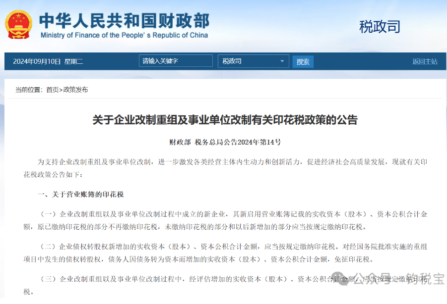 财政部 税务总局公告2024年第14号